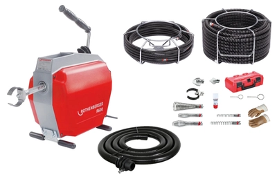 Urządzenie maszyna do czyszczenia rur kanalizacji ROTHENBERGER R600 19173 z zestawem 16/22mm + Magazynek wraz ze sprężyną 8mm/7,5m