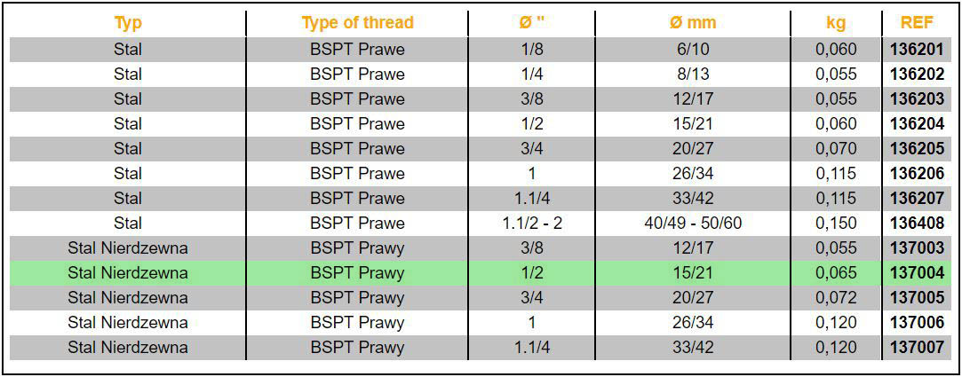 - Rury muszą być zgodne z normami EN 10255 S i EN 10255 W (dawne normy NFA 49115 i NFA 49145 seria średnia i mocna); nie zaleca się używania do rur stalowych serii lekkiej.
