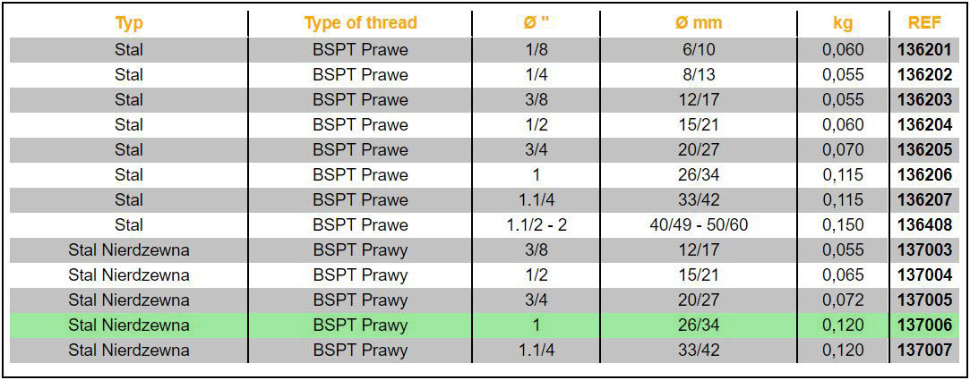 - Rury muszą być zgodne z normami EN 10255 S i EN 10255 W (dawne normy NFA 49115 i NFA 49145 seria średnia i mocna); nie zaleca się używania do rur stalowych serii lekkiej.